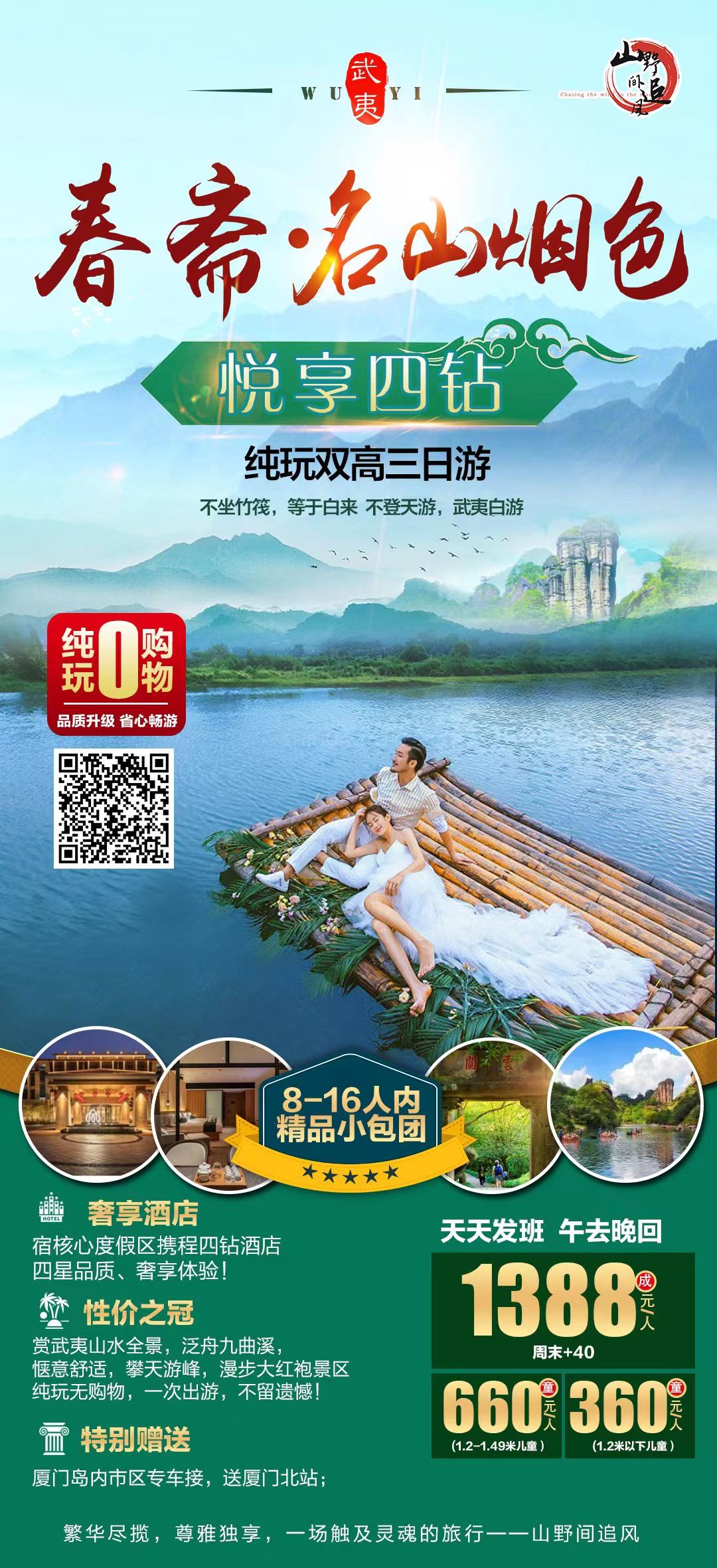 温馨提示:▲因天气原因、景区人数等原因,特别是九曲溪竹排漂流的游览时间需由武夷山景区智能中心根据当地实际情况安排,旅途中可能对行程先后顺序做出调整,但不影响原定标准或减少景点。如遇人力不可抗拒因素造成行程要更改、延误、滞留或提前结束,本社负责协助解决或退还门票款,由此产生的费用自理,旅行社不负赔偿责任!