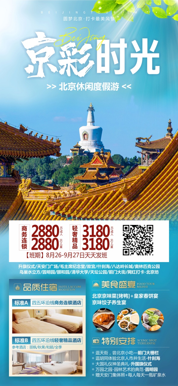 2、当天行程景点位于北京古老中轴线上,全天以步行为主。加之此中心区域为国家重要职、能部门所在地,交通管制严格明确,单行道内不可随意停车。故在此区域候车时间较长,步行路程较多,敬请提前做好心理准备,谢谢配合及理解。