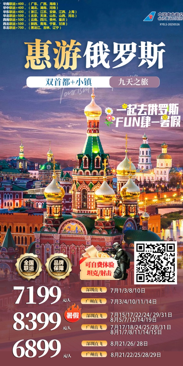 3、签证:俄罗斯免签名单(所需资料:清晰护照扫描件,有效期从回团日起6个月以上);是否准予出入境 ,是有关部门的权力 ,如因游客自身原因 ,不准出入境而影响行程的 ,团队费用损失由游客自行承担。