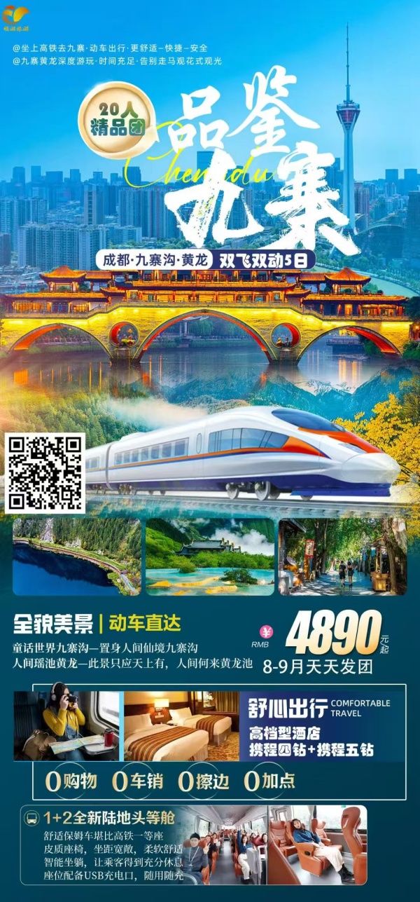 4.如今日成都东站-松潘/九寨黄龙站动车为下午及以后,则黄龙调整为第四天上午游览;第四天都江堰/熊猫乐园调整为今日游览,且午餐调整至今日中午享用(不减少景点及用餐次数,但会根据动车时间灵活调整,不指定动车班次,敬请理解)。5.按照国家客运索道安全管理相关要求,为确保索道安全运行,阿坝大九旅集团黄龙索道分公司邀请国内外专家定于2024年12月1日至25日对索道进行全面检查,开展检修维护工作,预计25天,期间索道停止对外运营,请大家做好行程安排,并关注索道运行情况,感谢您的理解和支持。
