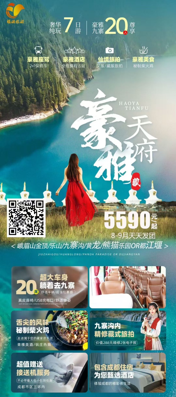 备注:此线路分为2段散客拼团:九寨沟黄龙拼团、乐山峨眉山段拼团