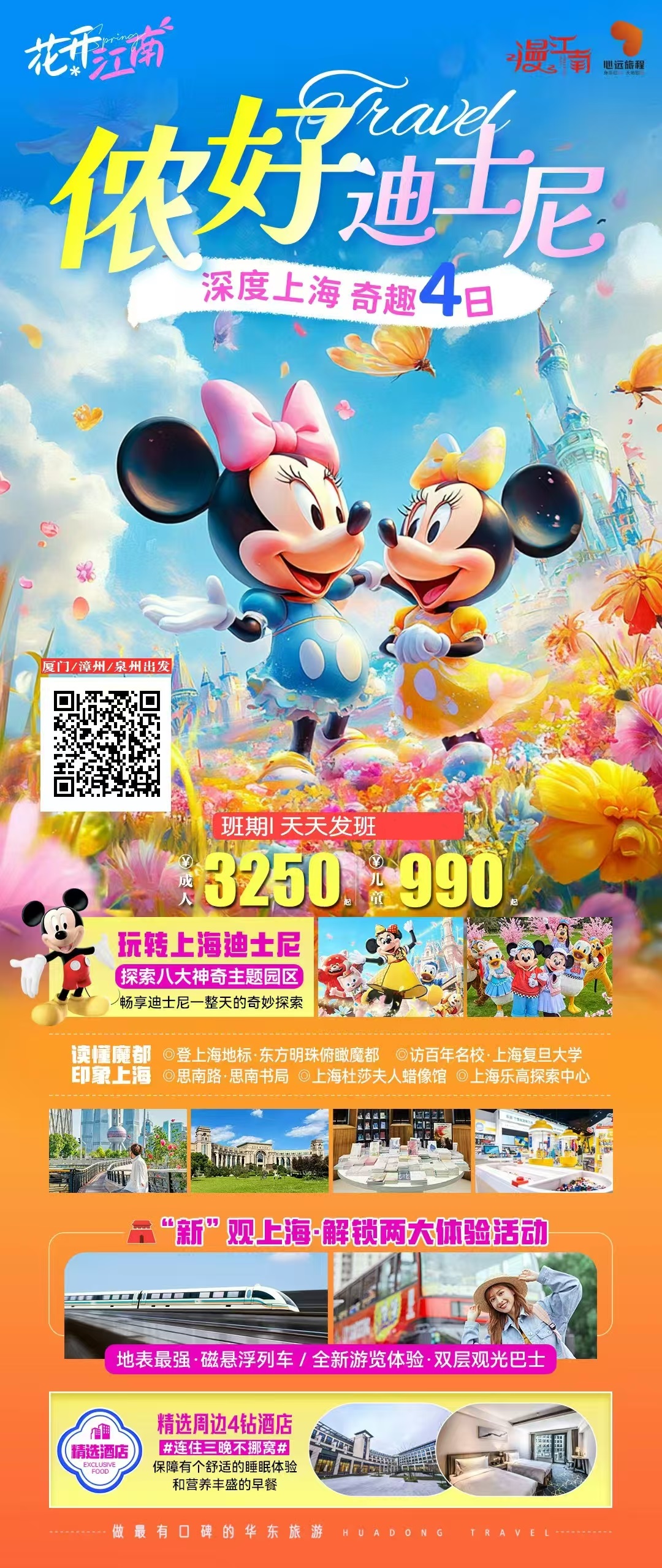 全天:【上海迪士尼乐园】(迪士尼当天班车接送,无导游服务,园区内自由活动):欢迎来到一个前所未见的神奇世界,在此点亮您的心中奇梦。这就是上海迪士尼乐园,无论老幼,都可以在此感受充满创造力、冒险和刺激的乐趣!把目光投向奇幻童话城堡,世界上最大的迪士尼城堡,准备好开始探索这七大各具魅力而令人难忘的神奇园区:米奇大街、奇想花园、梦幻世界、探险岛、宝藏湾、明日世界和迪士尼·皮克斯玩具总动员主题园区;