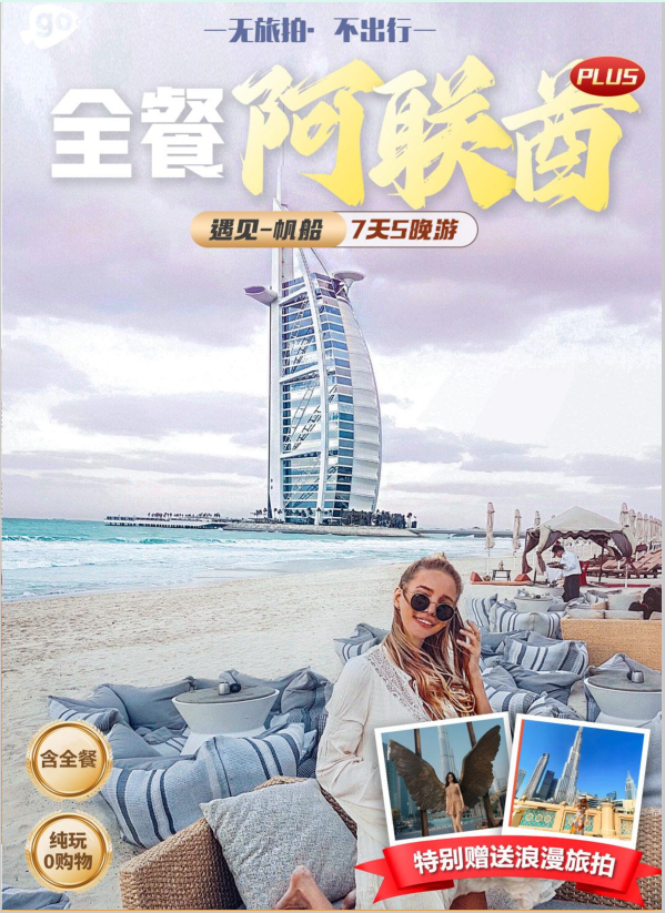 2.全程3晚阿联酋四星级酒店+1 晚阿联酋国际5星酒店+1晚卓美亚帆船酒店(定团前需二次确认房况,我司保留调整酒店入住日期的权利,根据酒店预订情况调整入住日期),双人间(单人报名正常与其他客人拼住,如需要单间请补齐房差),遇旺季或酒店满房,无法保证双床,床型以酒店实际给出为准