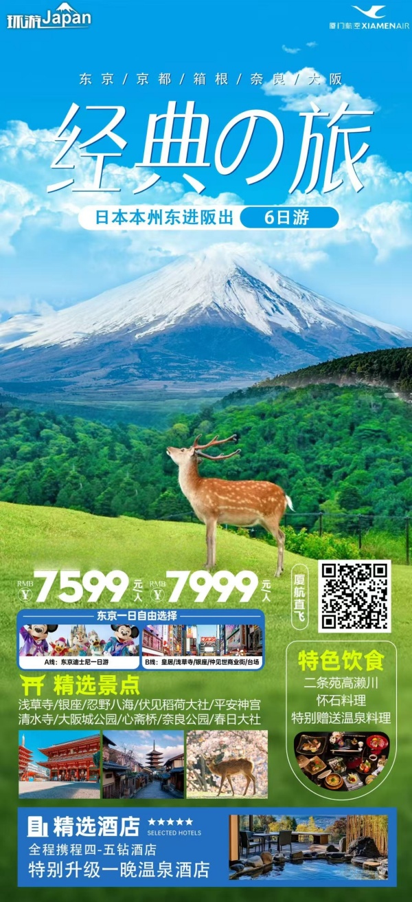 1、 交通:厦门/大阪/厦门、东京/大阪团队经济舱机票含税(团队机票一经开出,不得更改、不得签转、不得退票)。