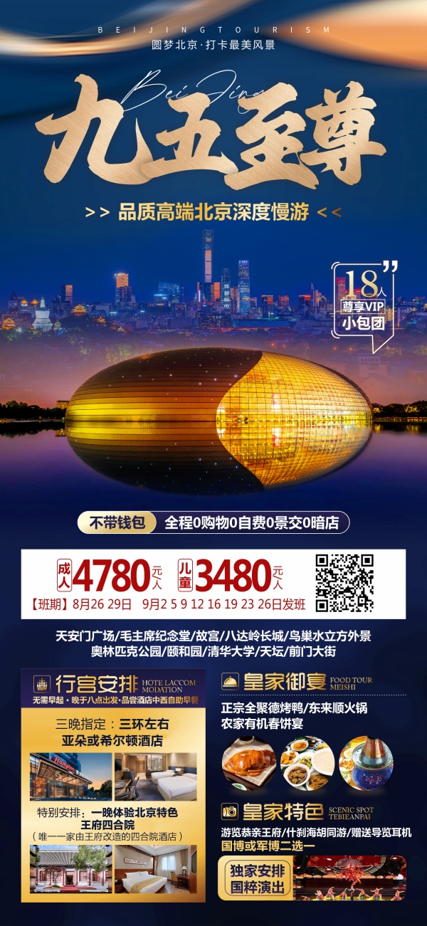 ☆温馨提示:当天行程景点位于北京古老中轴线上,全天以步行为主。加之此中心区域为国家重要职能部门所在地,交通管制严格明确,单行道内不可随意停车。故在此区域候车时间较长,步行路程较多,敬请提前做好心理准备,谢谢配合及理解。