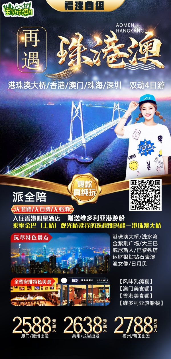 住宿:1晚深圳预备四星酒店+1晚香港四星酒店+1晚珠海/中山预备四星酒店