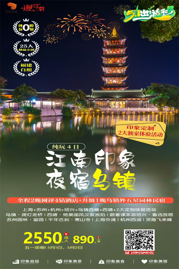 前往:东方威尼斯、中国水乡之城-苏州(车程约1.5小时);