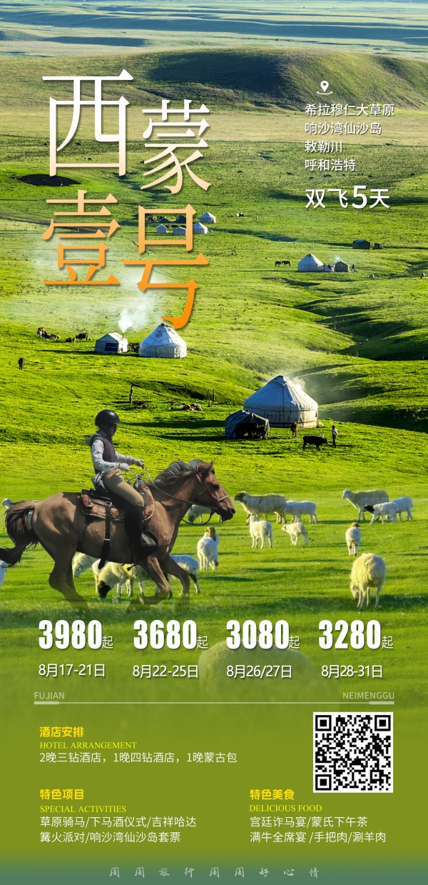 5、草原团餐较简单,导游会根据情况适当加菜,草原是三餐一宿捆绑销售,餐不用不退;