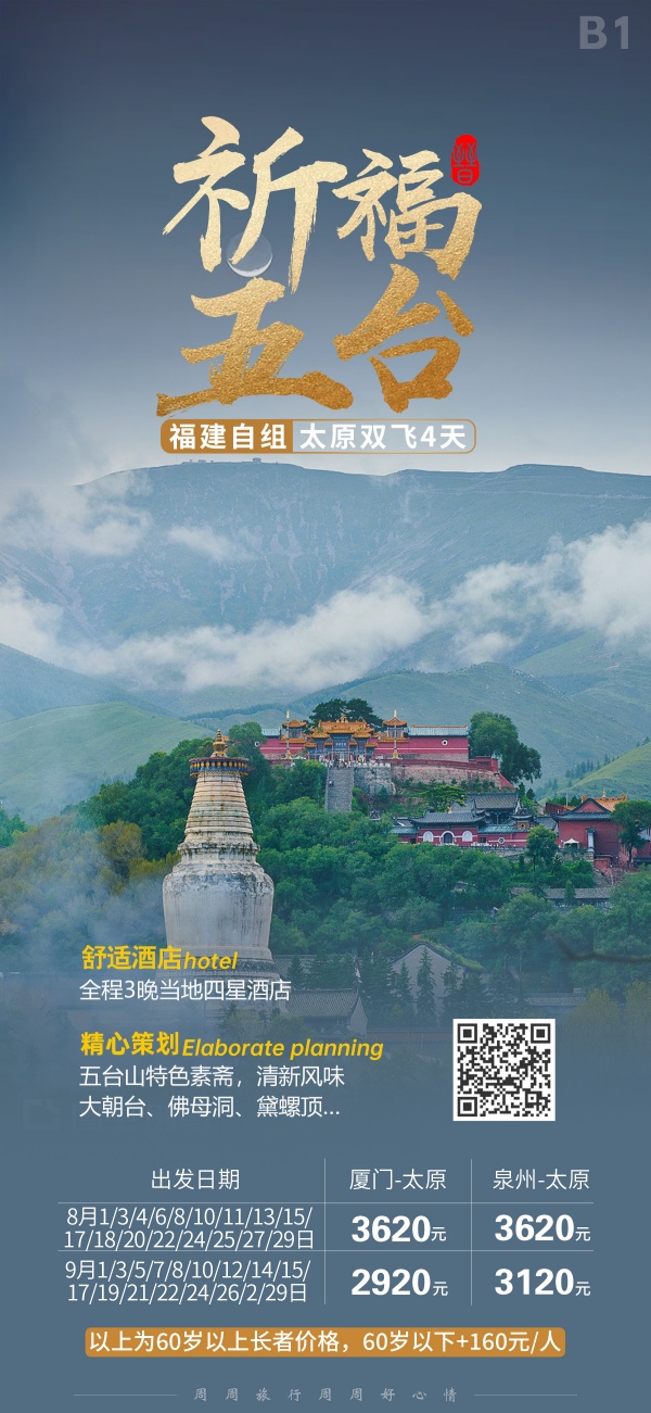 2、五台山地势高,早晚温差大,气温较低,请您备好防寒衣物;